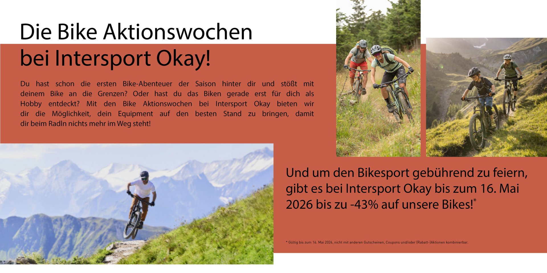 Die großen Bike Aktionswochen bei Intersport Okay locken mit unschlagbaren Rabatten auf unser großes Bike-Sortiment!