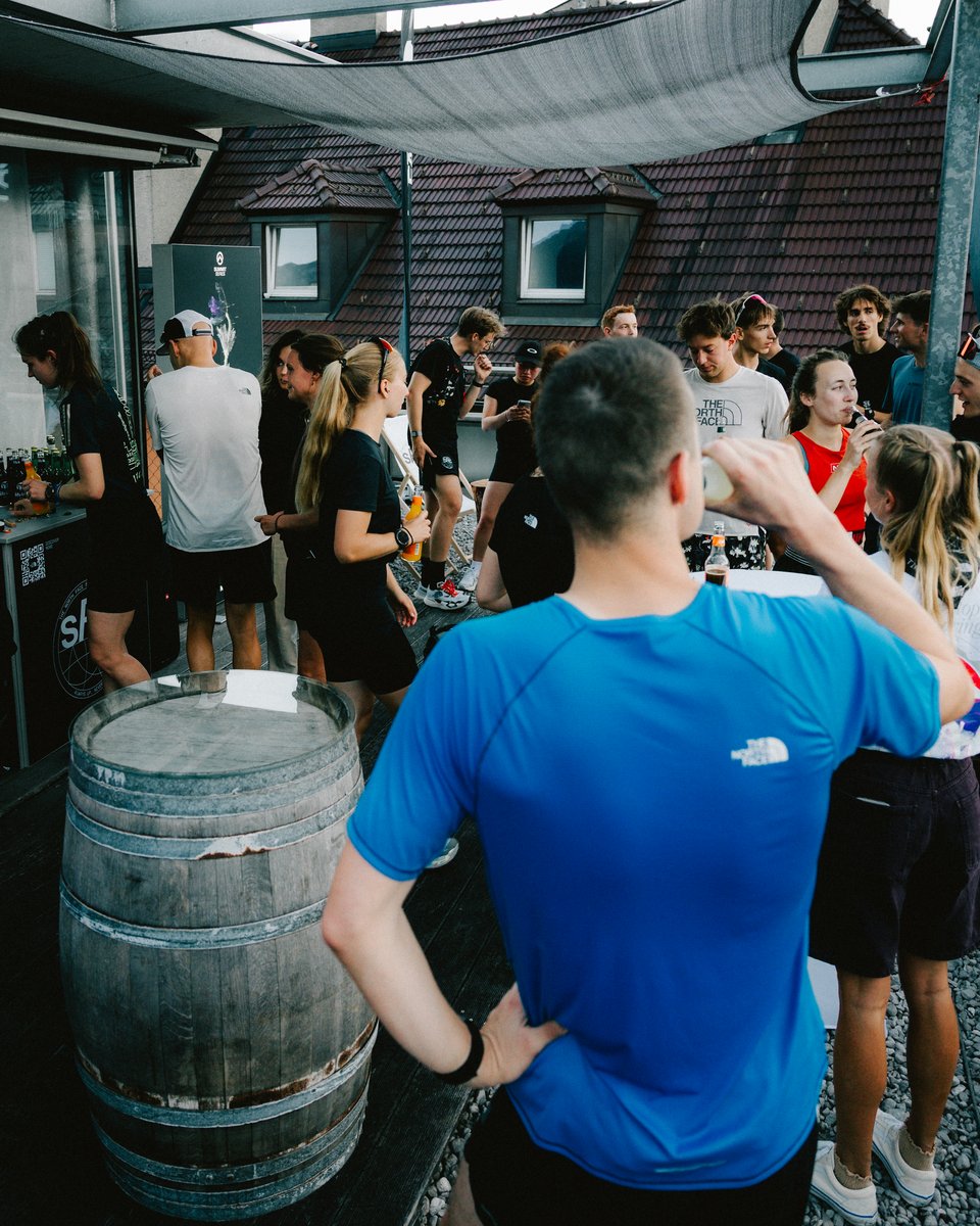 Im Anschluss an die sportliche Aktivität erwartete die Läufer:innen ein entspannter Ausklang auf der Dachterrasse. Bei Pizza, Getränken und lockerer Atmosphäre klang der Abend in geselliger Runde aus.