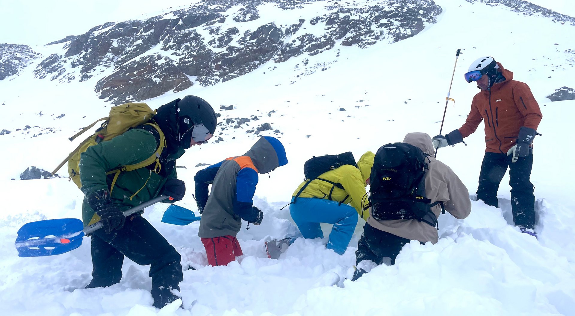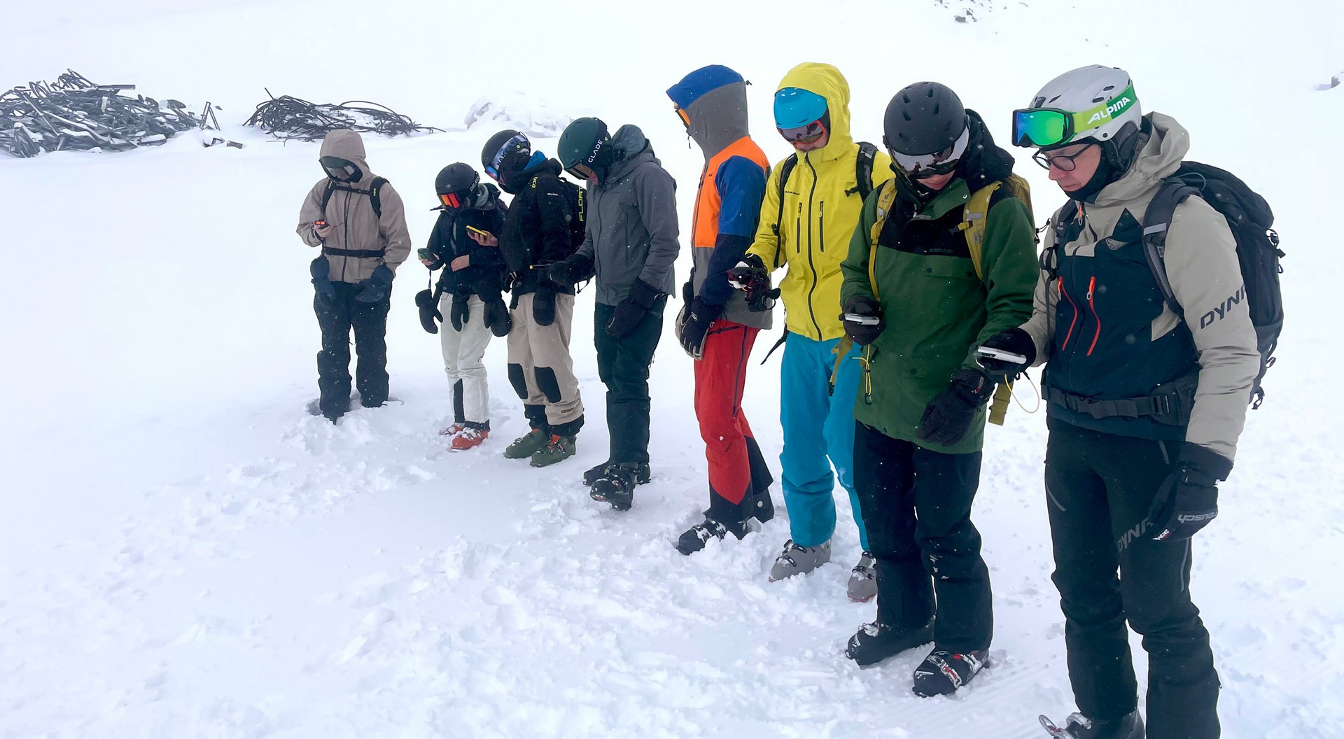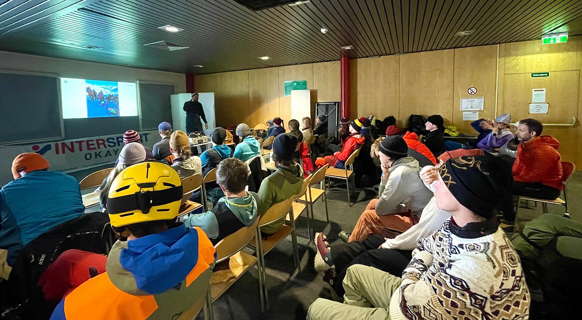 Die Teilnehmerinnen und Teilnehmer konnten sich auf abwechslungsreiche und inhaltlich dichte Trainingstage freuen. Am Vormittag stand zunächst die Theorie im Fokus. Dabei wurden unter anderem die fünf Lawinenwarnstufen, die richtige Touren- und Geländewahl, das korrekte Verhalten bei einem Lawinenabgang sowie grundlegende Maßnahmen der Ersten Hilfe im Ernstfall behandelt. Zusätzlich erhielten die Teilnehmerinnen und Teilnehmer eine ausführliche Einführung in die Nutzung der SOS-App. Ziel war es, ein solides Wissensfundament zu schaffen – Wissen, das im Gelände im Ernstfall lebensentscheidend sein kann.